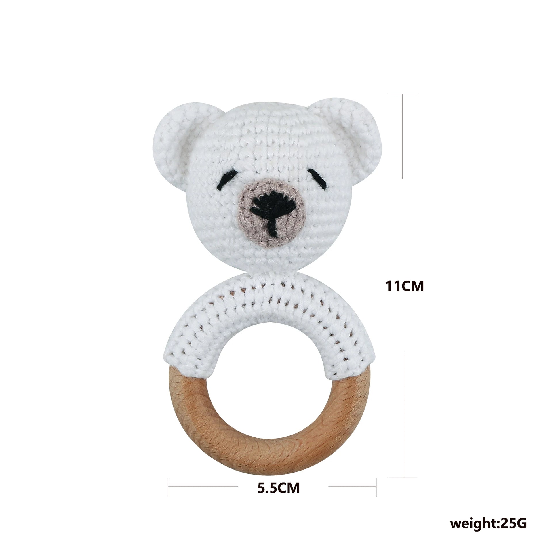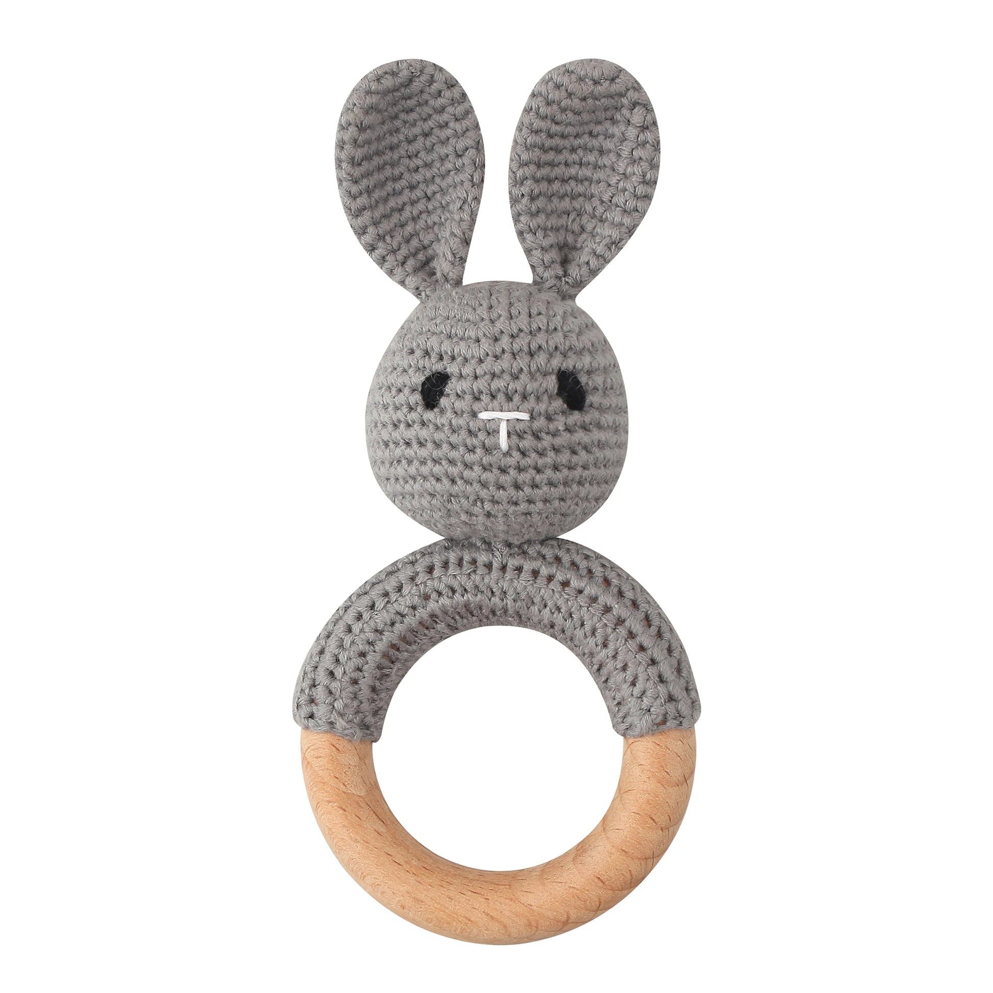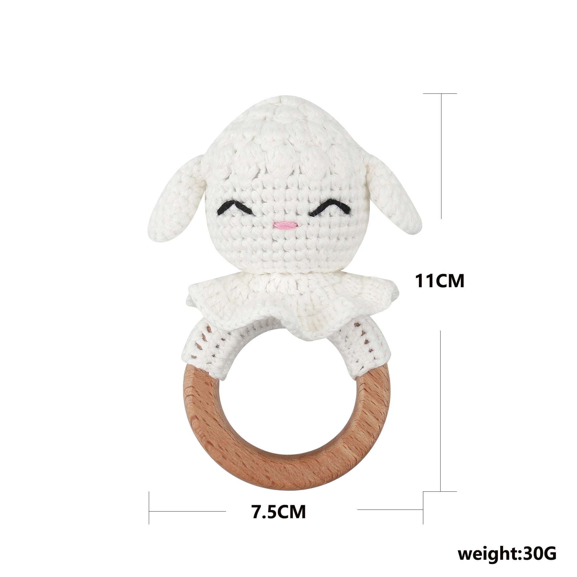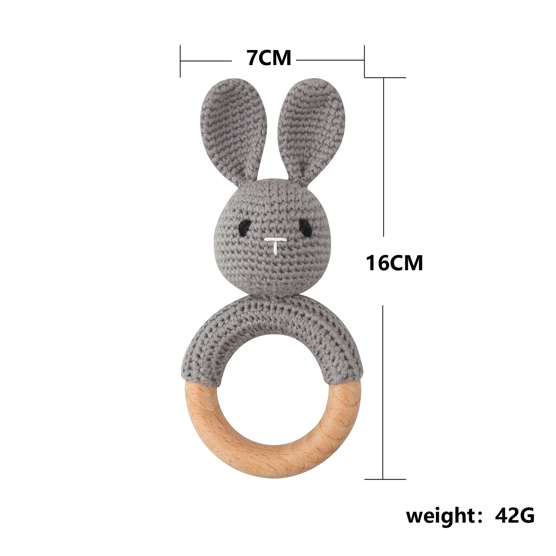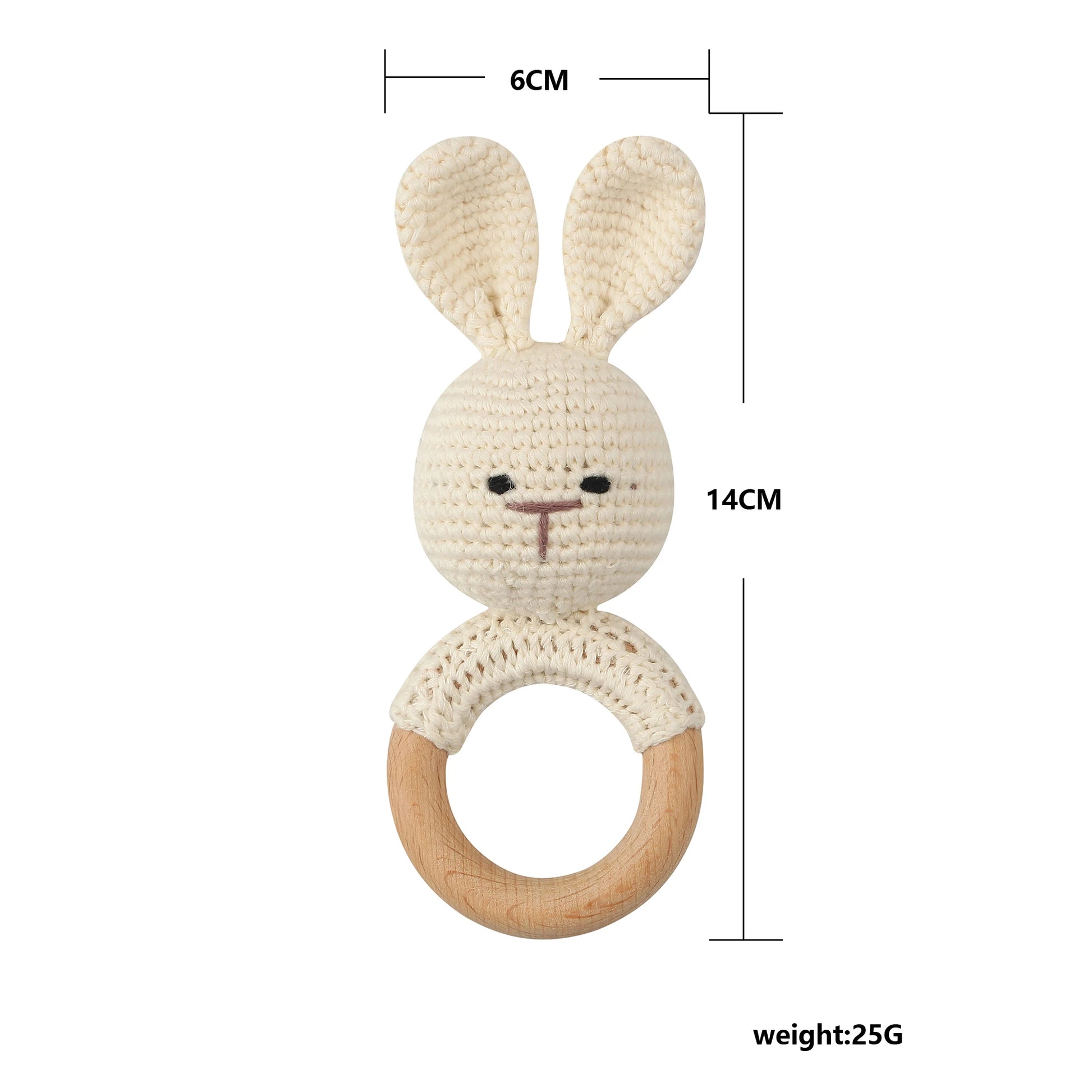 1Pc Wooden Crochet Bunny Rattle Toy Wood Ring Baby Teether Rodent Baby Gym Mobile Rattles Custom Name Educational Toys