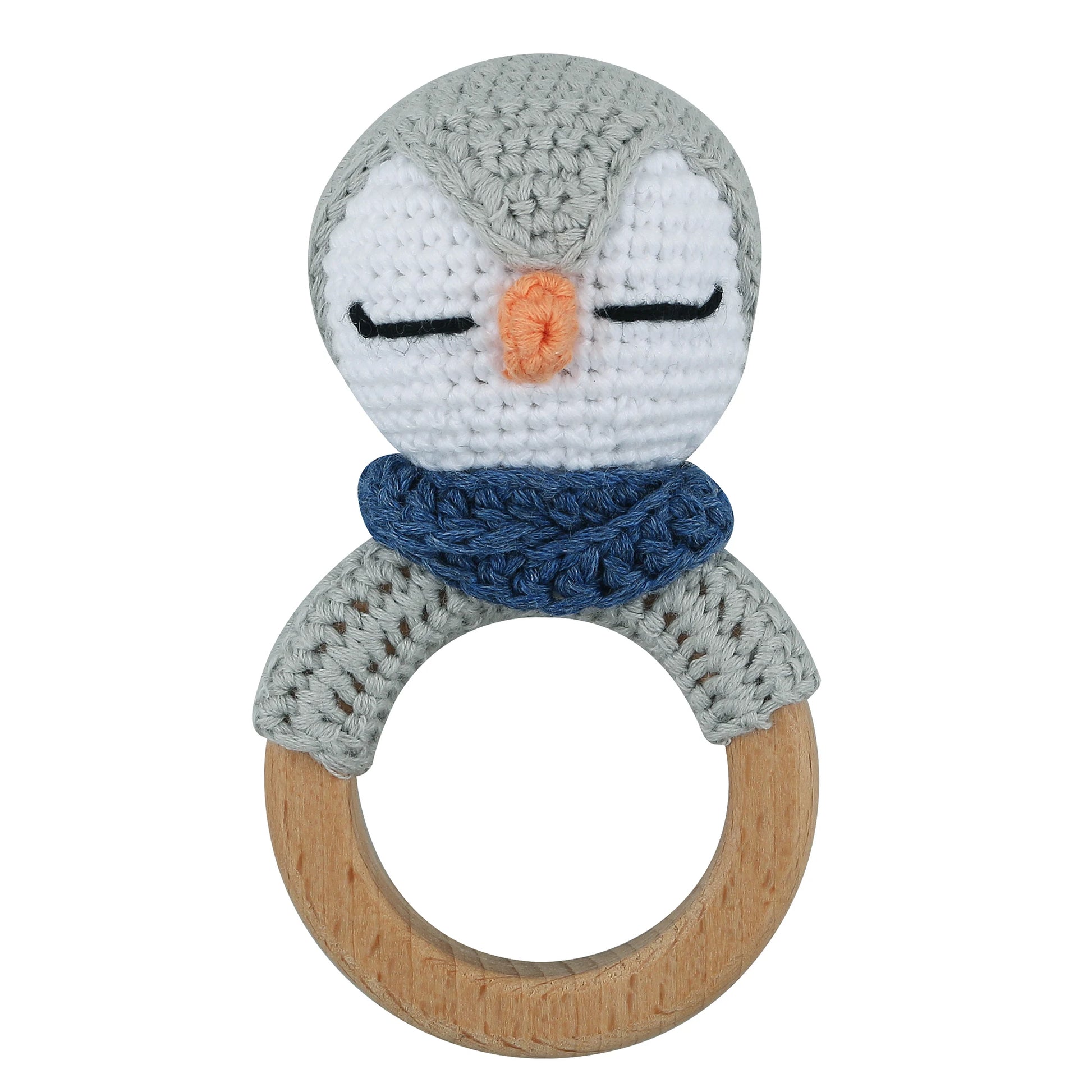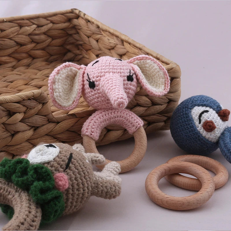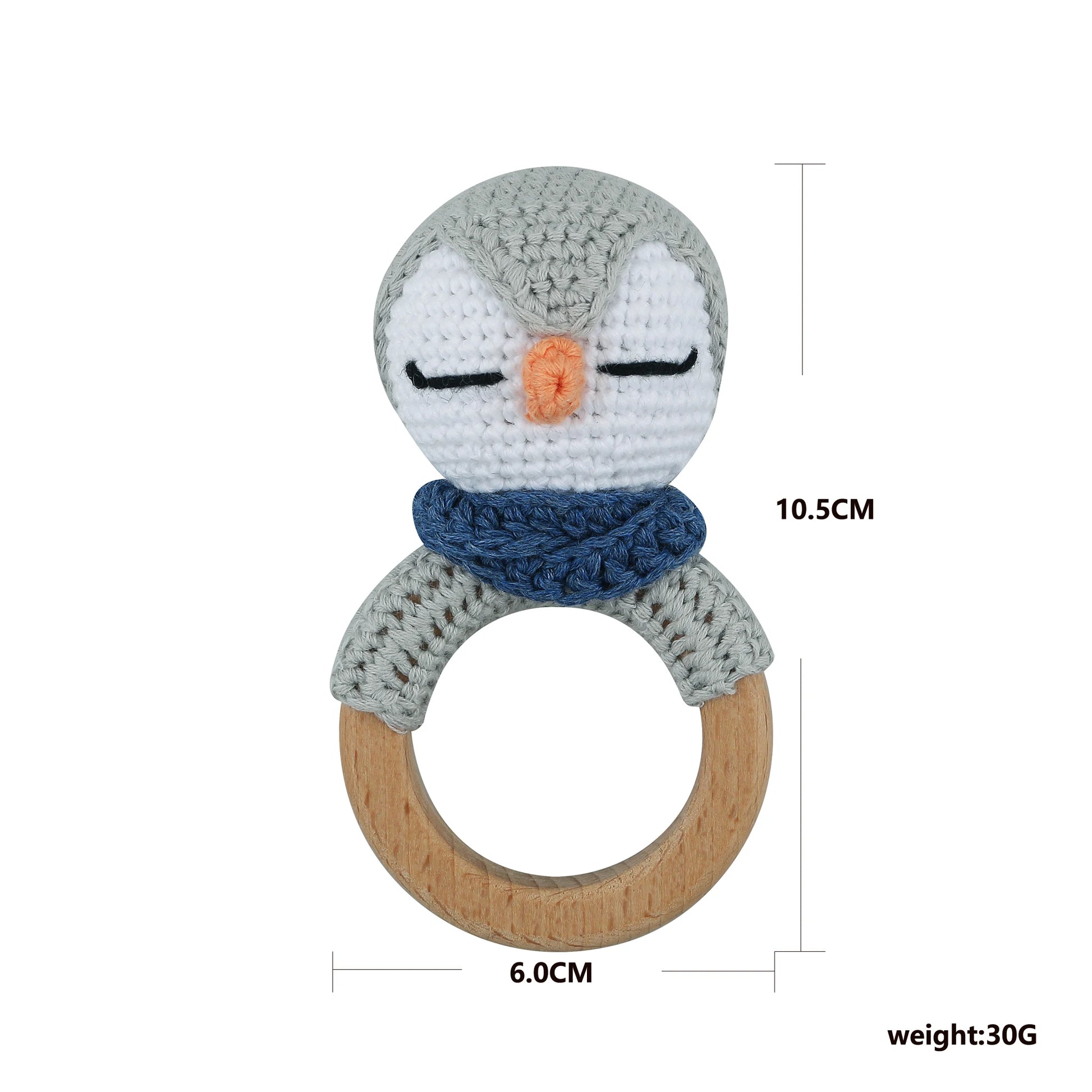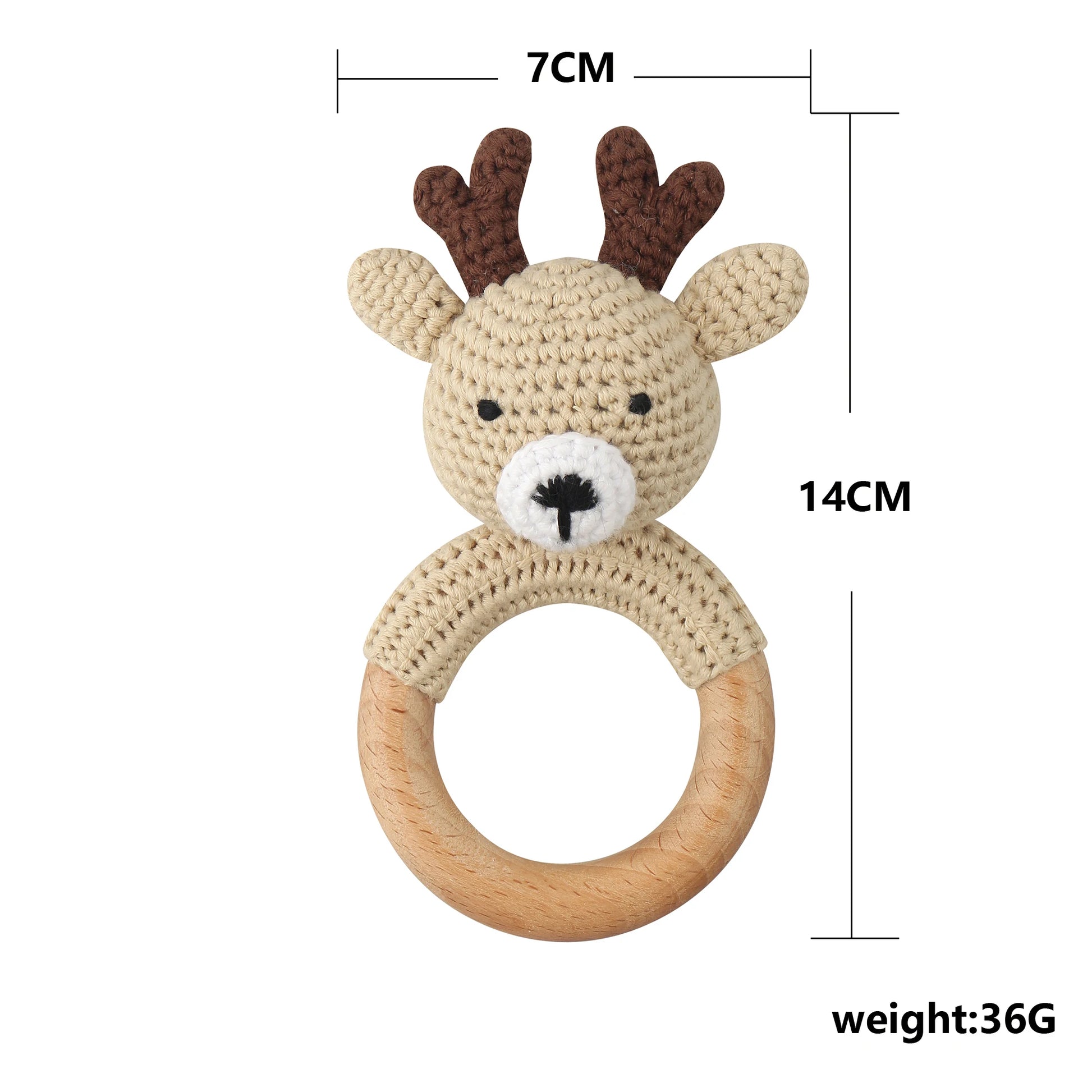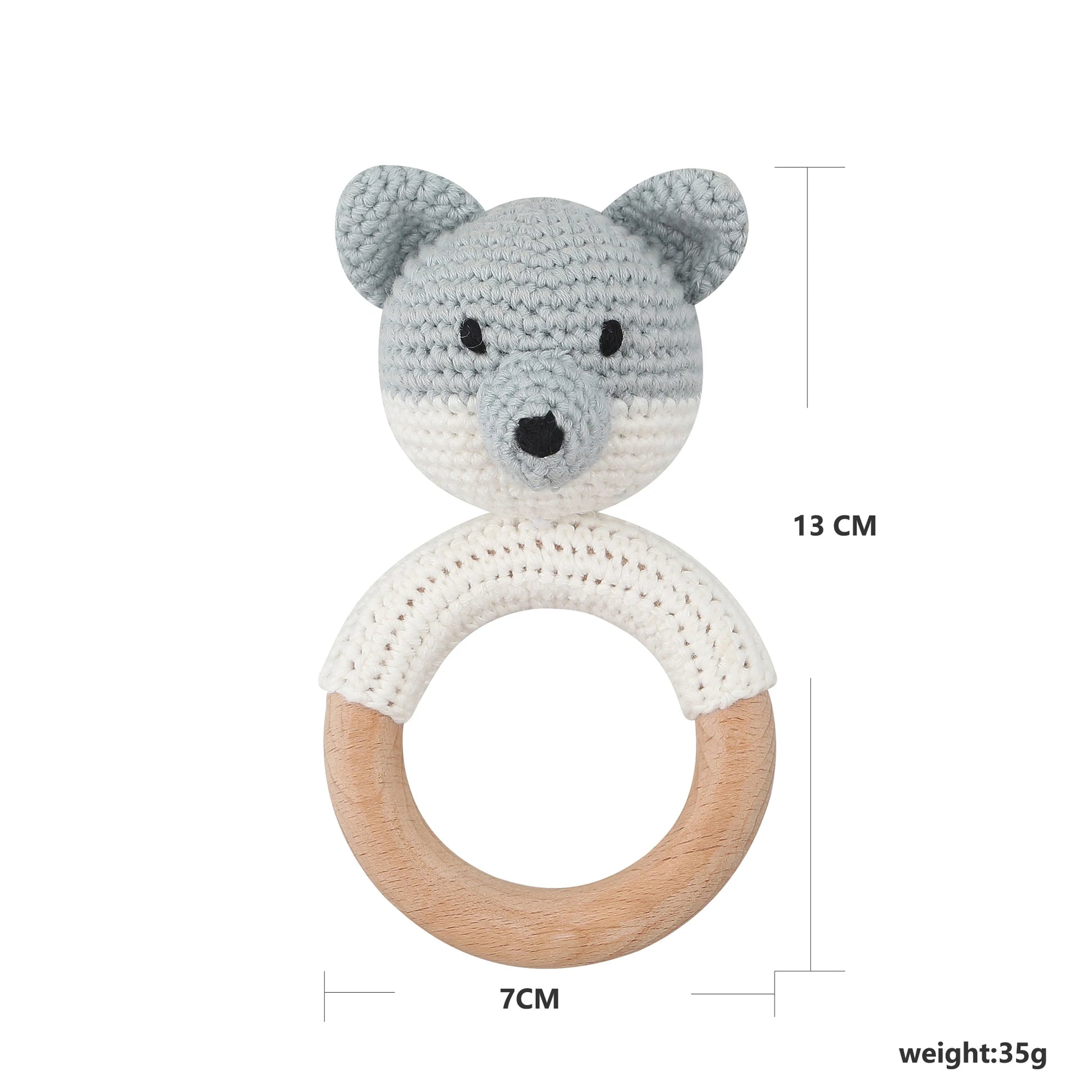 1Pc Wooden Crochet Bunny Rattle Toy Wood Ring Baby Teether Rodent Baby Gym Mobile Rattles Custom Name Educational Toys
