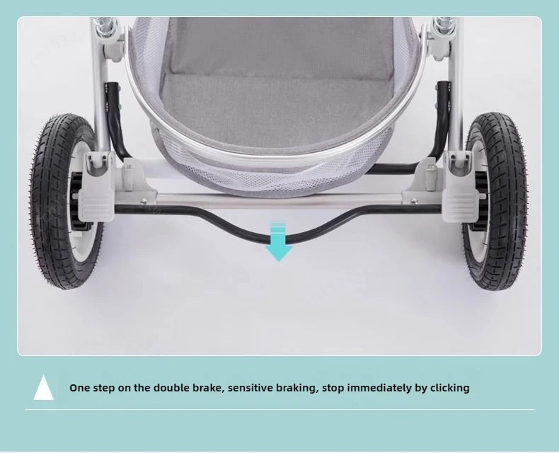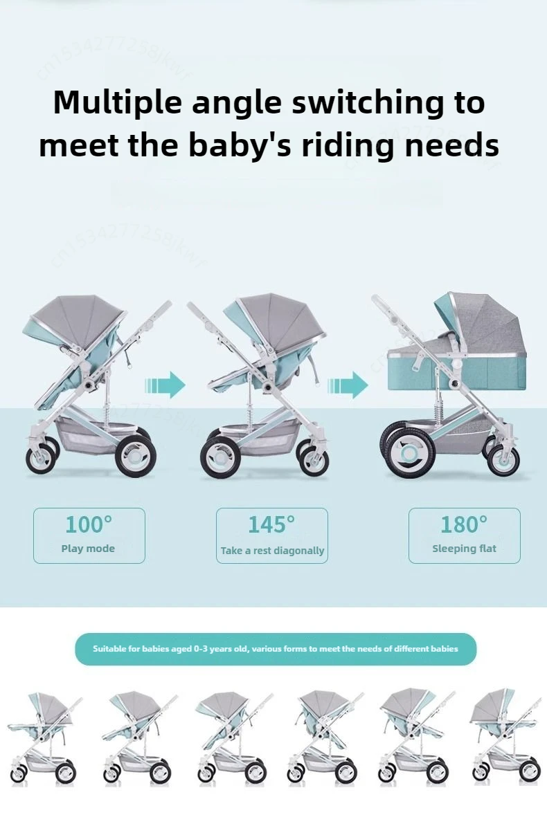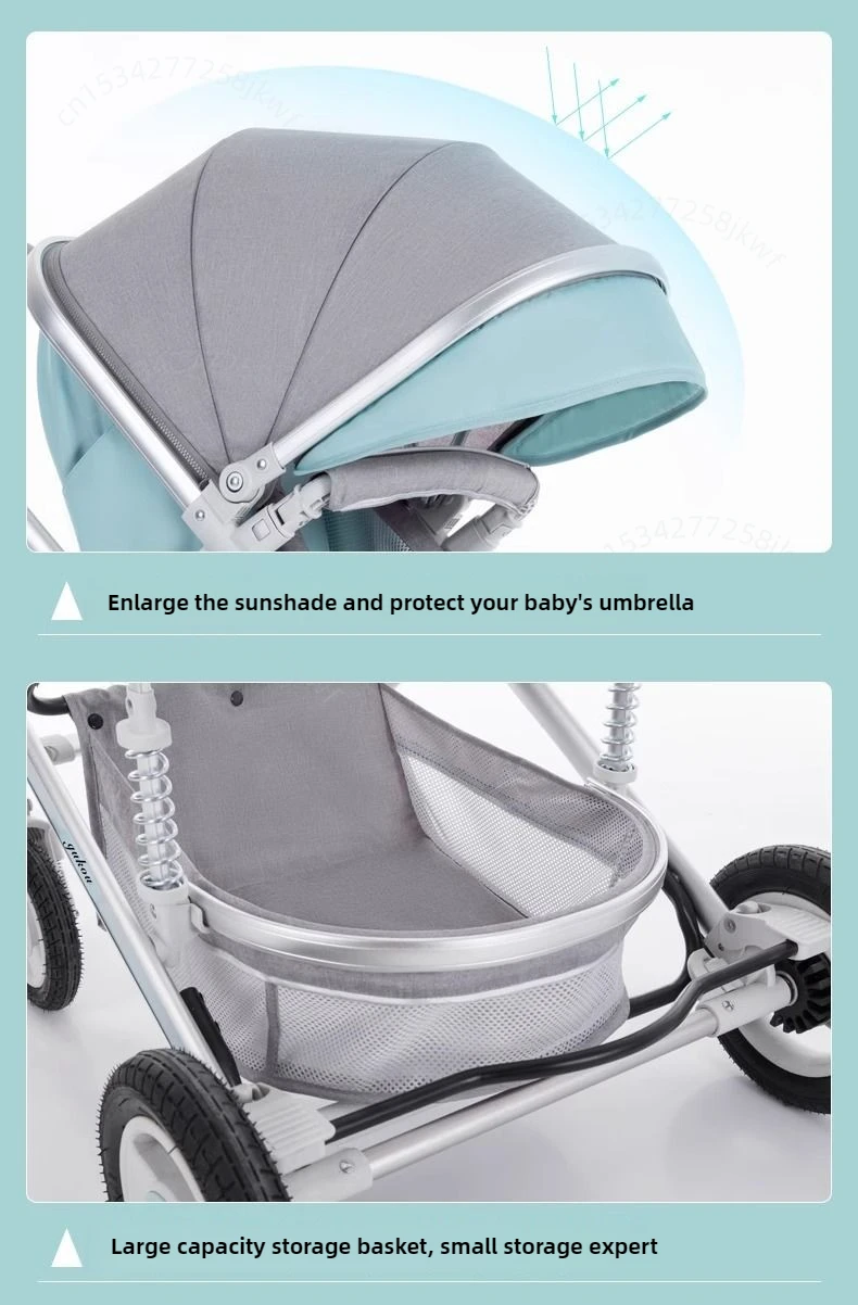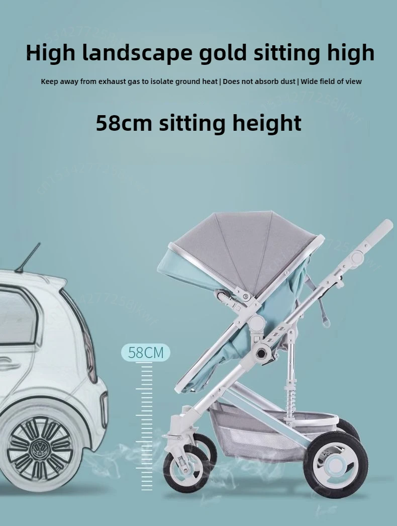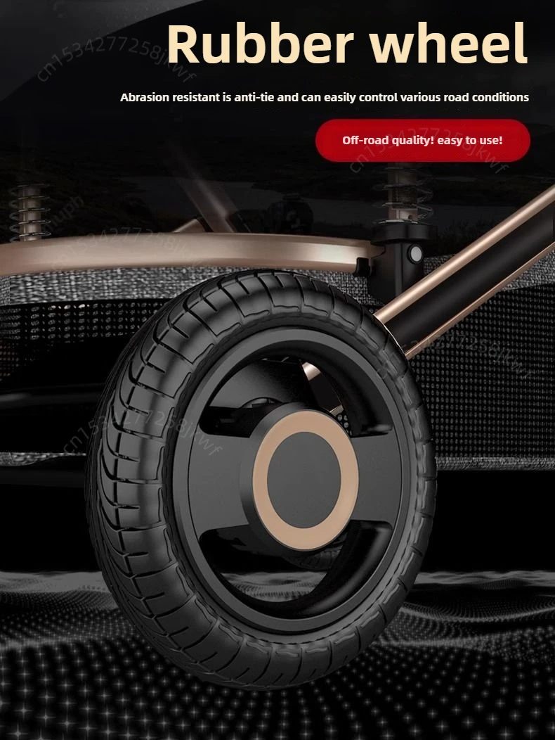 High landscape baby stroller, natural rubber wheels, aluminum alloy material, lightweight folding four-wheel stroller