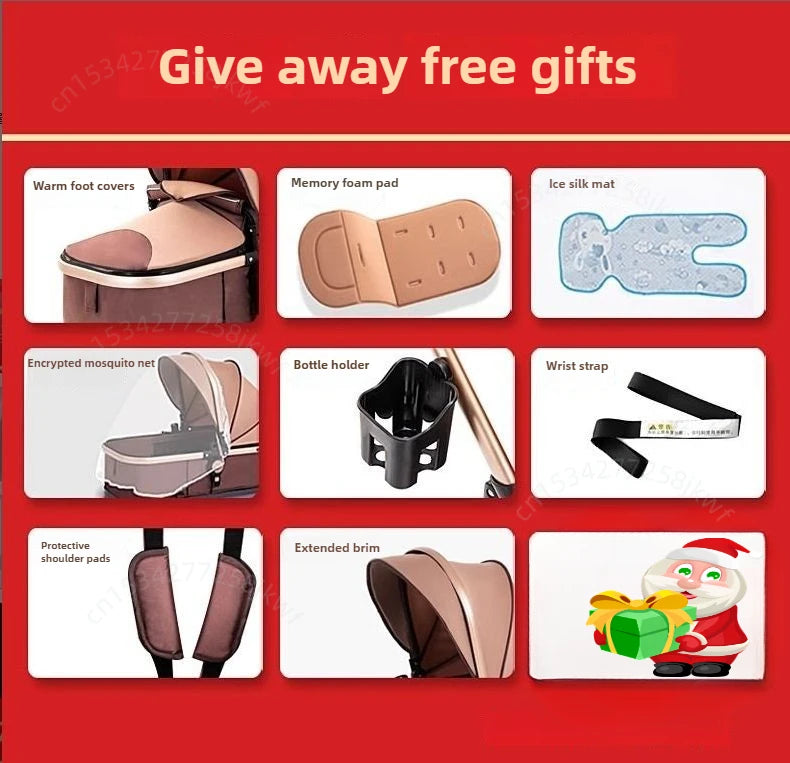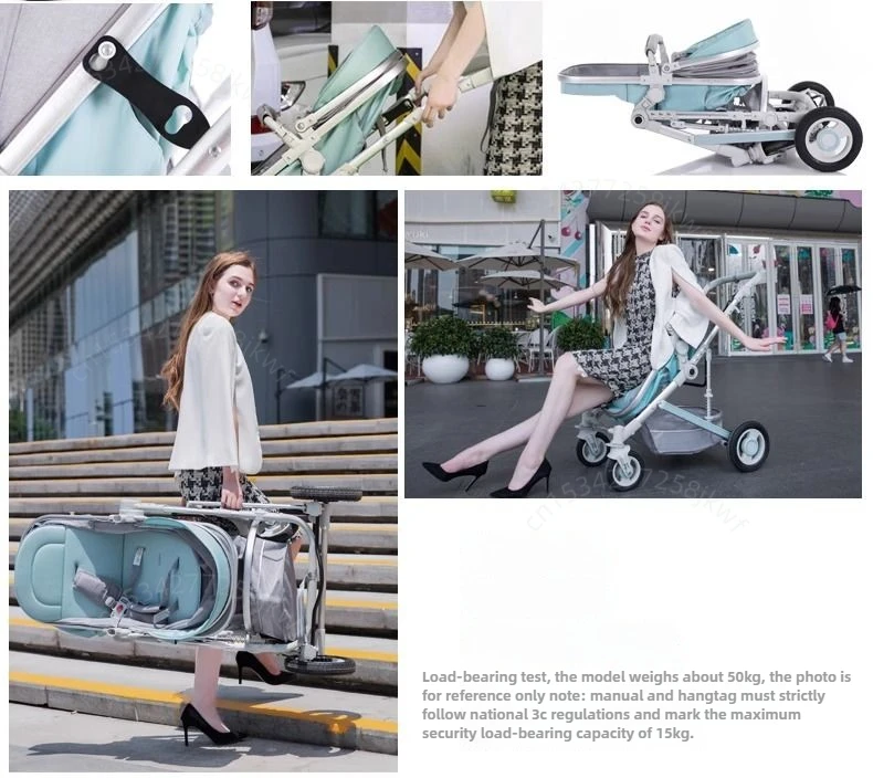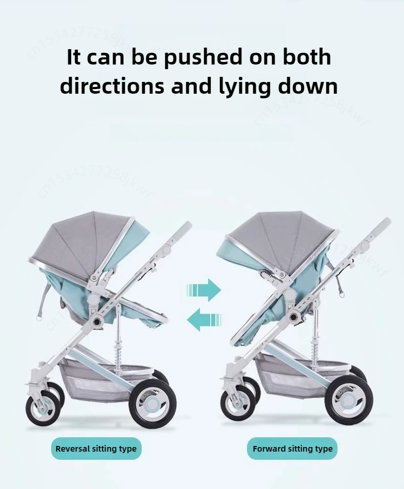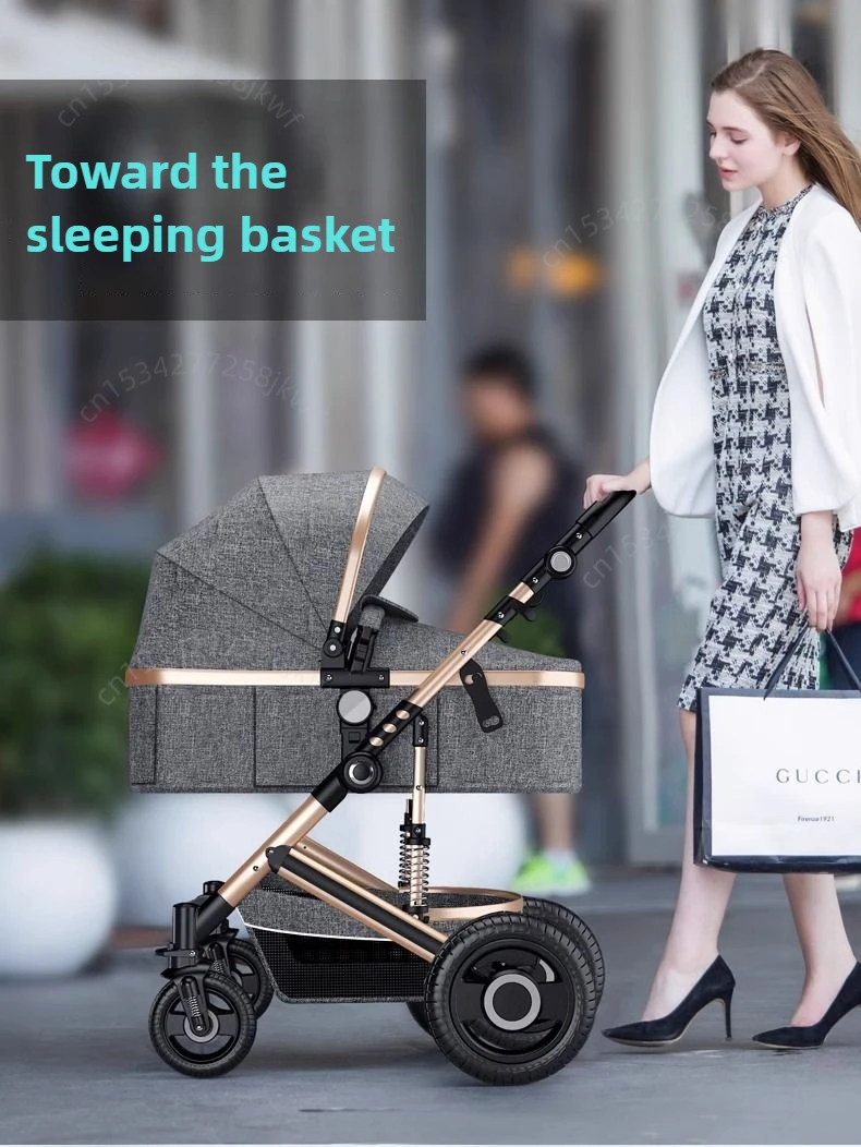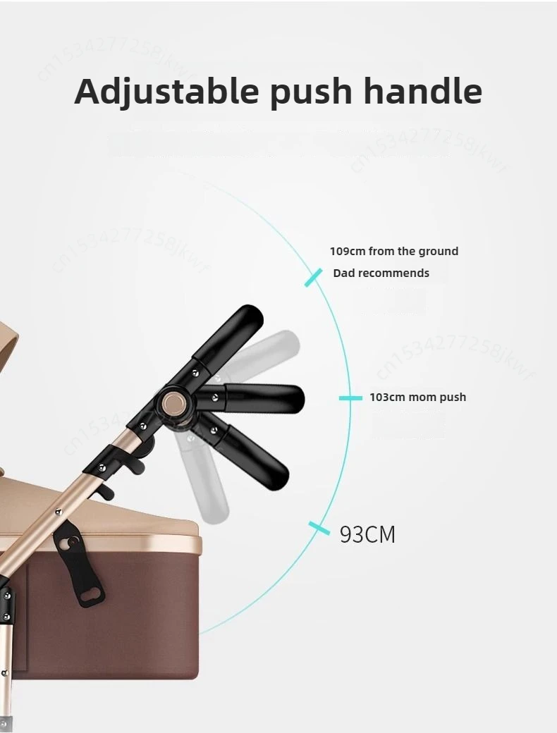 High landscape baby stroller, natural rubber wheels, aluminum alloy material, lightweight folding four-wheel stroller